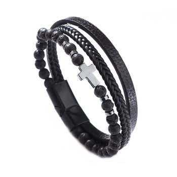 Naturale occhio di tigre braccialetto di perline per gli uomini-croce cristiana Design chiusura magnetica in pelle gioielli da uomo gioielli