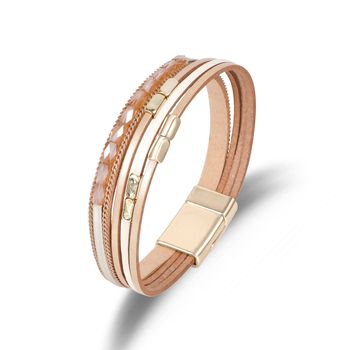 Boheemse Stijl Gelaagde Leren Armband Met Magnetische Sluiting Armband Mode Kralen Armbanden