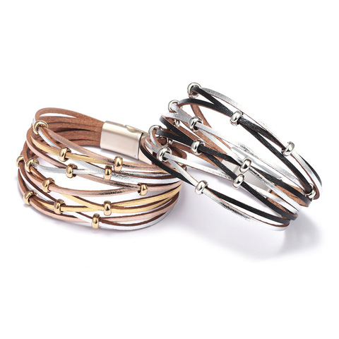 Fashion Multilayer Gold Wrap Bracelets Boho Bangles Leather Wrap Magnetic Clasp Bracelet Jewelry for Women
