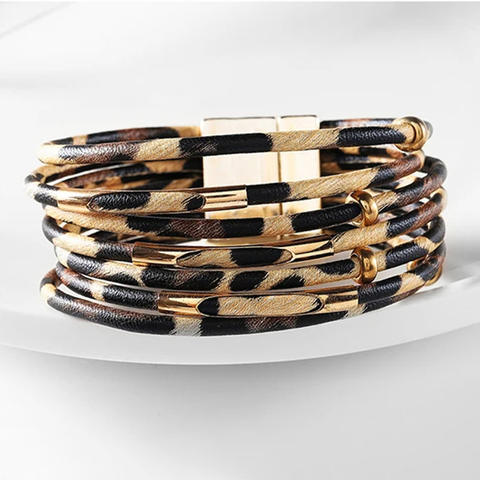 Leopard Leather Bracelets Bohemian Luxury Magnetic Clasp Multi-layer Print Leather Bracelet Women Gift Jewelry