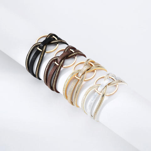 2026 Boho Symmetrical Leather Bracelets Circle Magnetic Clasp Infinity Charm Pu Leather Bracelet for Women Friendship Gift