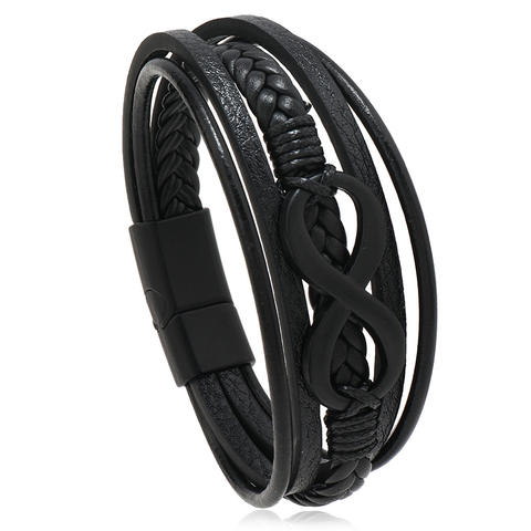 Men's Popular Fashion Charm Bracelets Alloy Infinite Bracelet Charm with Multilayer Leather and Magnetic Clasps