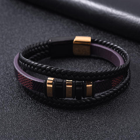 Stainless Steel Leather Bracelet Fashion Jewelry Personalized Multi-layer Braided Leather Bracelet Unisex