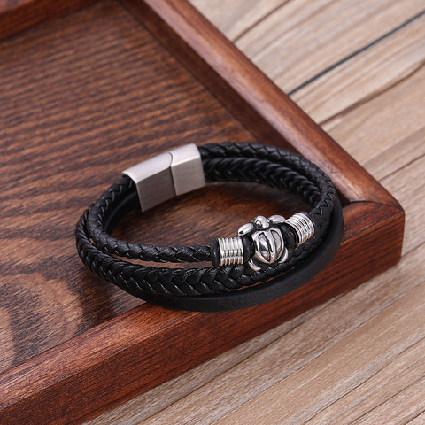Titanium Steel Leather Cord Bracelet Stainless Steel Jewelry Leather Woven Bracelet Leather Bracelet Multi-layer Men's Bracelet