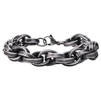 Retro Classic Handmade Vintage Silver Plated Zircon Stainless Steel Cuff Bracelet Men's Link Chain Bracelet for Men