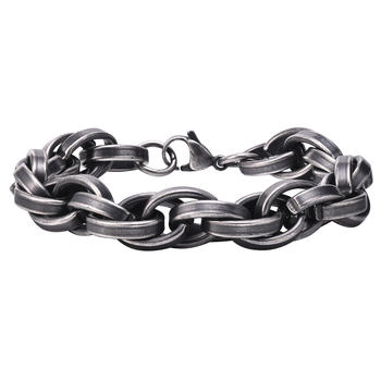 Pulseira de Cuff Vintage Clássica Retro Feita à Mão em Aço Inoxidável Prateado com Zircônia para Homens